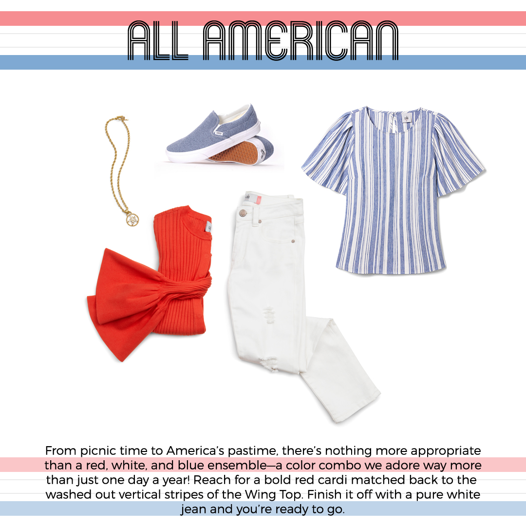 Featured Items: Trumpet Cardi, Wing Top, Starfish Medallion Necklace, The High Slim