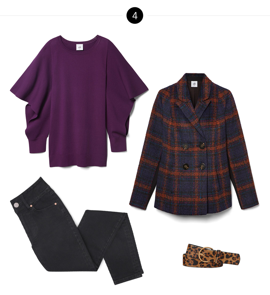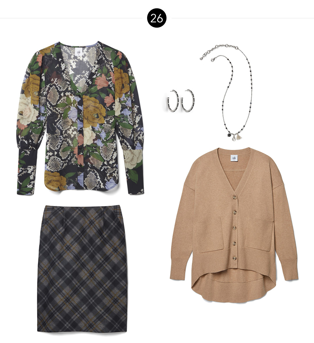Create a mini capsule of your own at home. Pick a pair of your favorite fall bottoms and style them three different ways. Snap a photo of each outfit and post a collage to Instagram #mixingitup @cabiclothing to share your styling skills with us.