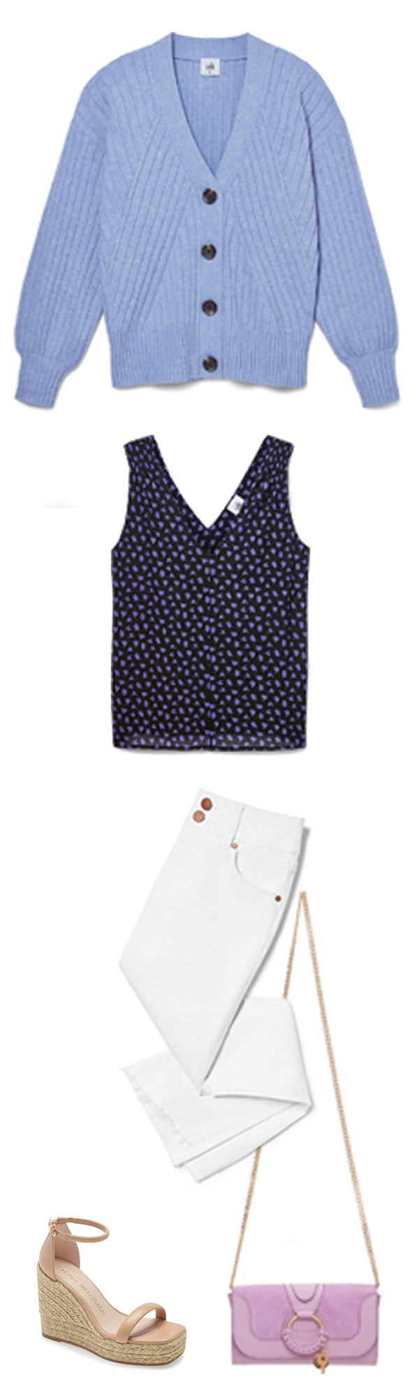 Featured Items: Scenic CardiganIsland TankHigh-Low Crop, Purse, Espadrilles,