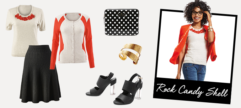 DRESSY: Hourglass Cardigan, Rock Candy Shell, Amelie Skirt, Hammered Cuff, Kate Spade iPad Sleeve, Miista Shoes