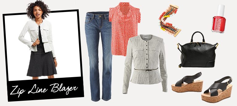 Zip it up … or down by wearing this structured piece with your favorite slouchy boyfriend jean.