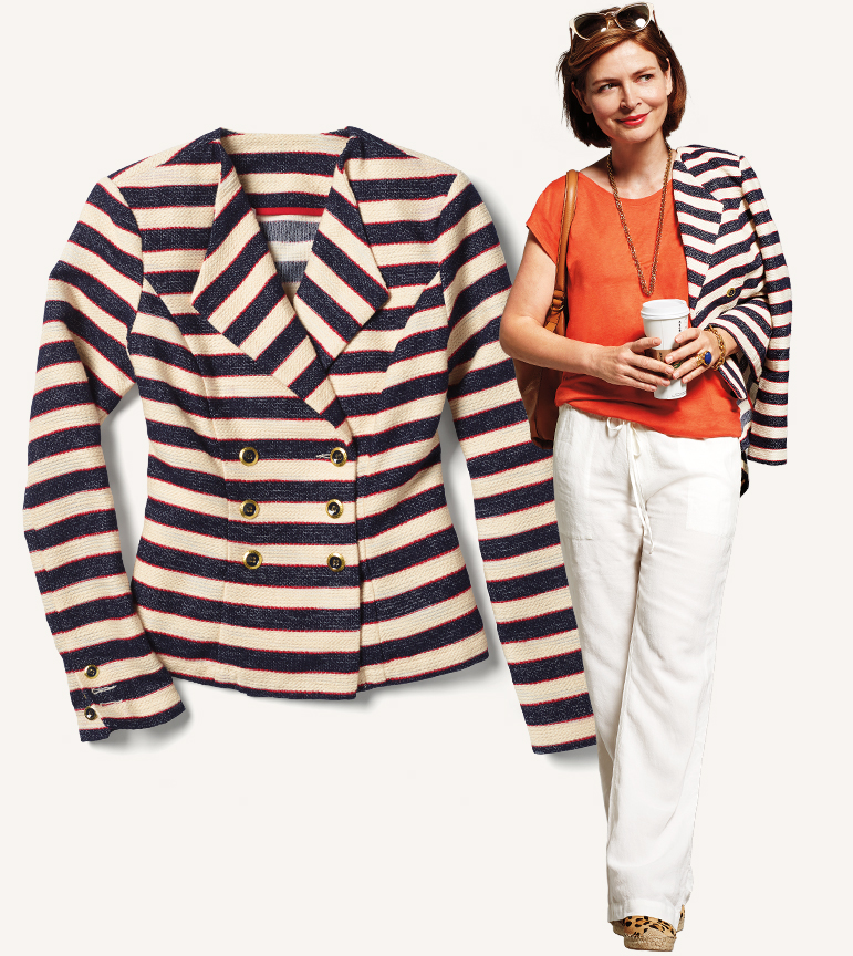 This jacket is everything to me. I love the nautical theme here, it’s just stunning and so classic. You can pair the Cruise Jacket with so many different looks for work – sheath dress, trousers, skinny denim, little white dress, and even a pleated short with espadrilles. The stylish gold and navy enamel buttons are the perfect touch, along with the tailored fit.