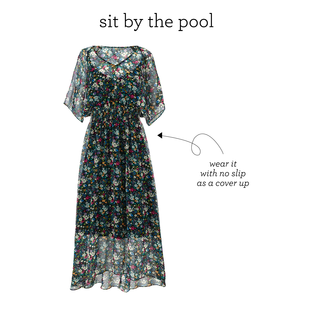 Laze the day away with your current read by the pool. With its removable slip, you can use the Fiesta Dress as your new favorite cover-up!