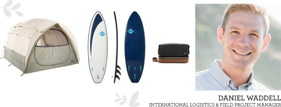 Featured Items: REI Co-op Kingdom Tent, Softech Surfboard, Refined Travel Kit