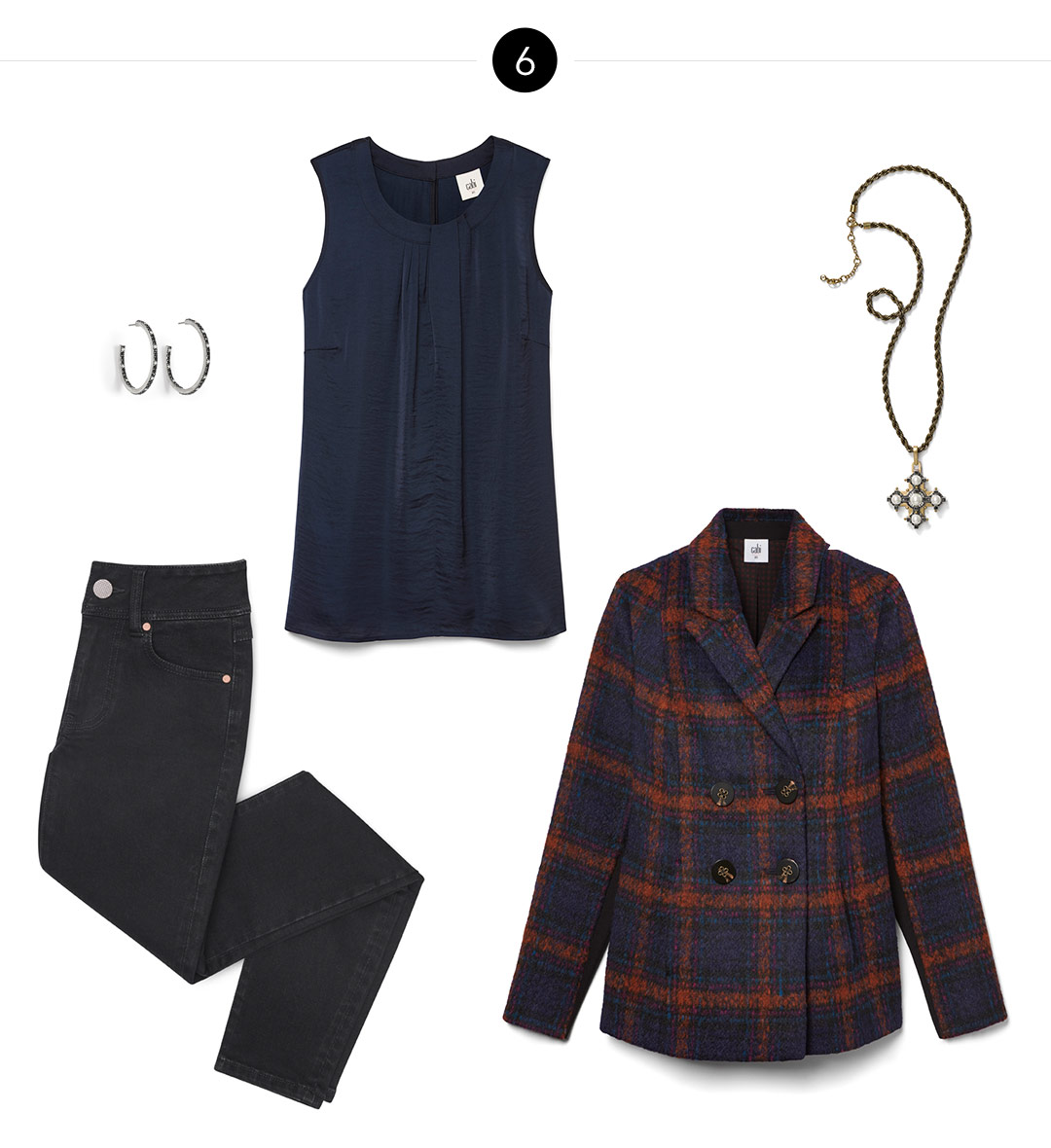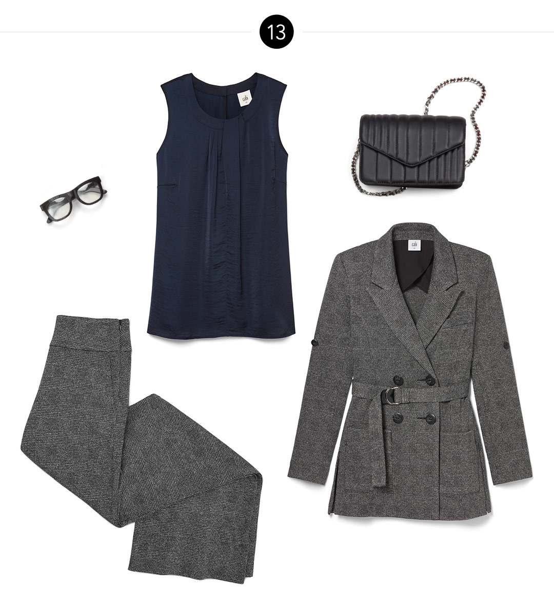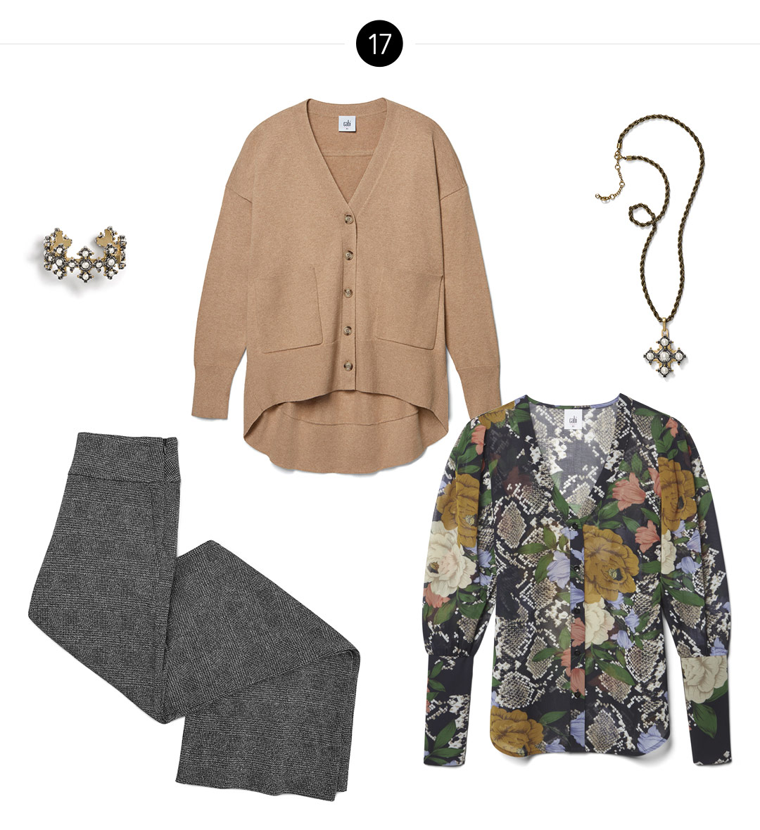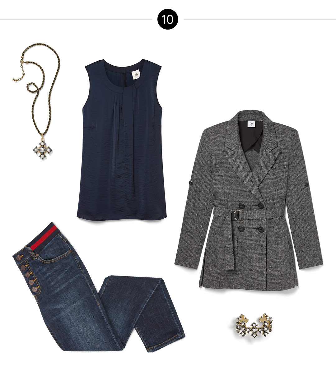 Create a mini capsule of your own at home. Pick a pair of your favorite fall bottoms and style them three different ways. Snap a photo of each outfit and post a collage to Instagram #mixingitup @cabiclothing to share your styling skills with us.