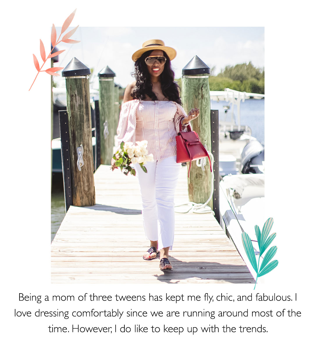 Without further ado, let’s meet our mothers. Miroslava just had a baby, making her a new mother of two! This military wife’s style is urban chic with an emphasis on blacks, reds, and neutral palettes. Sharonda is a mom of three, and as she puts it, “mommin’ is a sport!” She’s got a classic sense of style, but she isn’t afraid to go high fashion. Last but certainly not least is Amy, television personality and mother to two daughters. She loves color, whimsical prints, and flowy silhouettes. Keep reading to discover more about these inspiring mothers and how they’re celebrating this holiday with their loved ones.