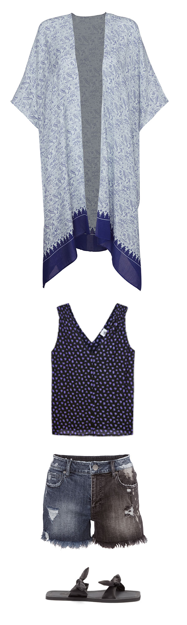 Featured Items: Scenic CardiganIsland TankHigh-Low Crop, Purse, Espadrilles,