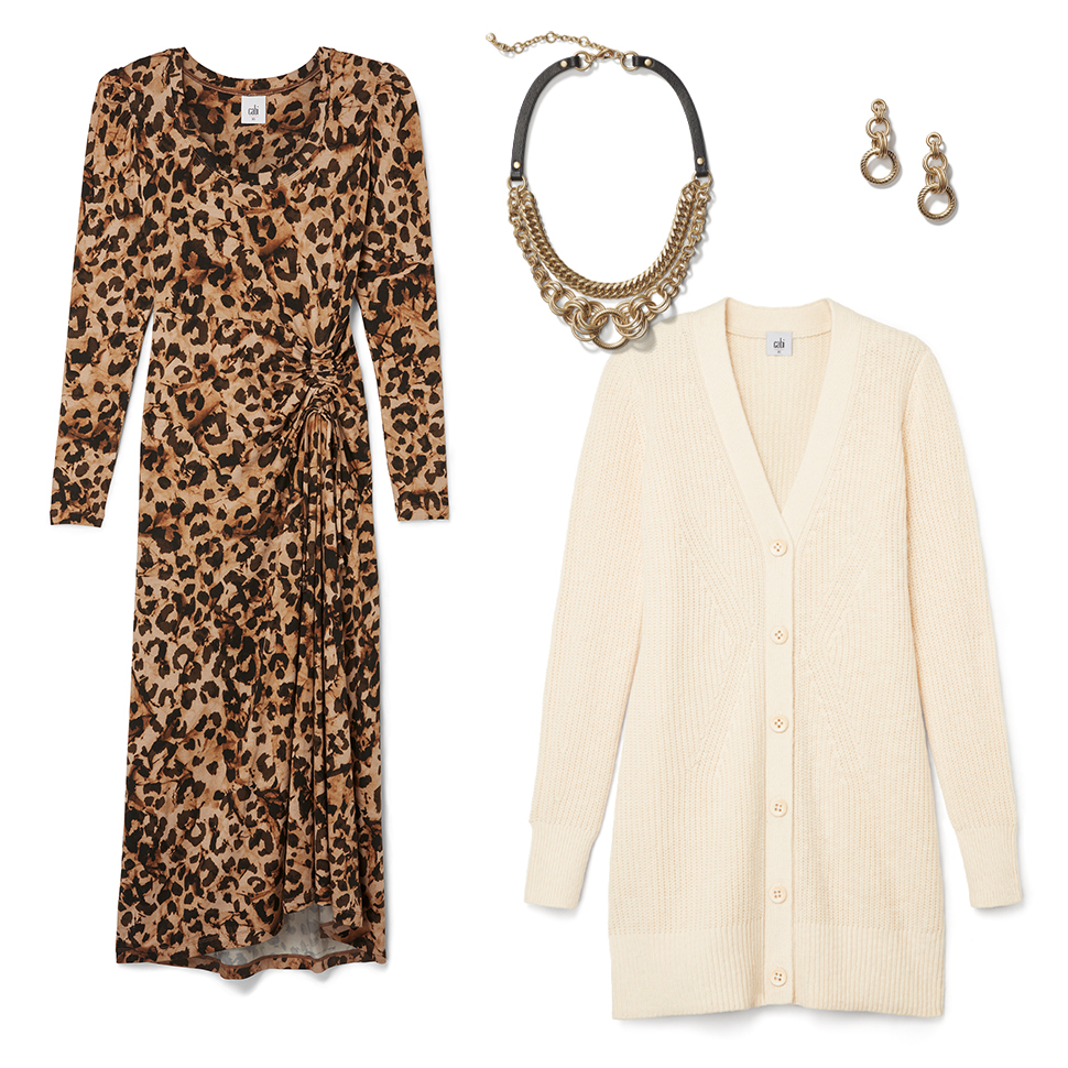 Sometimes, the best outfits are the simplest. Style the skin print Selma Dress back to the long Book Club Cardigan. Try scrunching the sleeves of the cardigan to reveal the long, printed sleeves of the dress beneath.