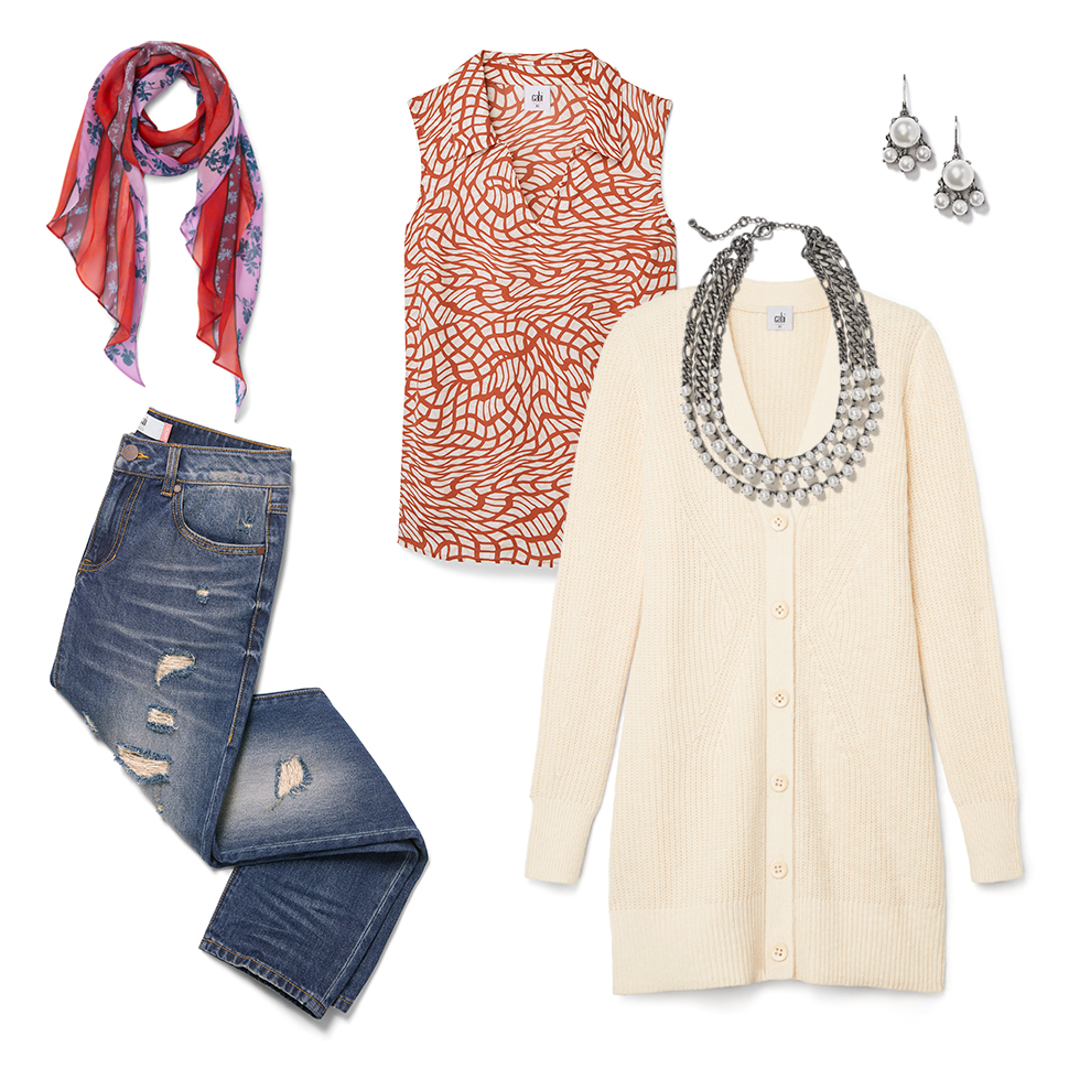 Busy day? Opt for slouchy jeans that won’t hold you back, then ramp up your style by wearing a printed scarf as a belt. When you’re this stylish, nothing can stand in your way.