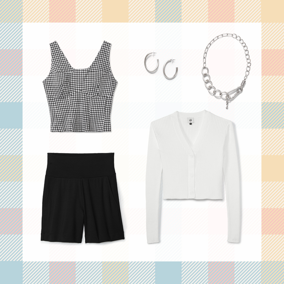 Style the checkered Bombshell Tank back to matching solids, like the all-black Chance Short and a white cardigan. Coordination at its best!