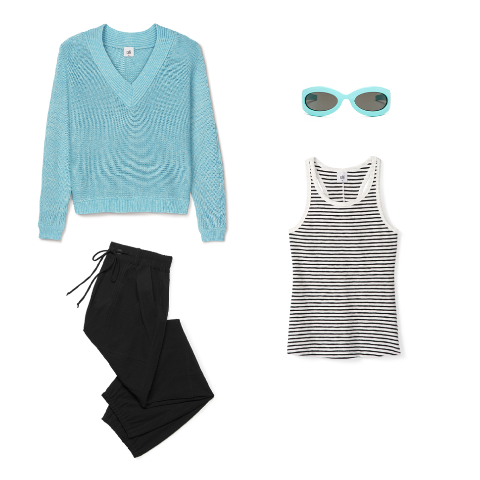 Pair the Quantum Cargo with a black-and-white striped tank, then simply add on a pop of color, like the icy blue Frosty Pullover. Easy, breezy, beautiful, cabi girl.