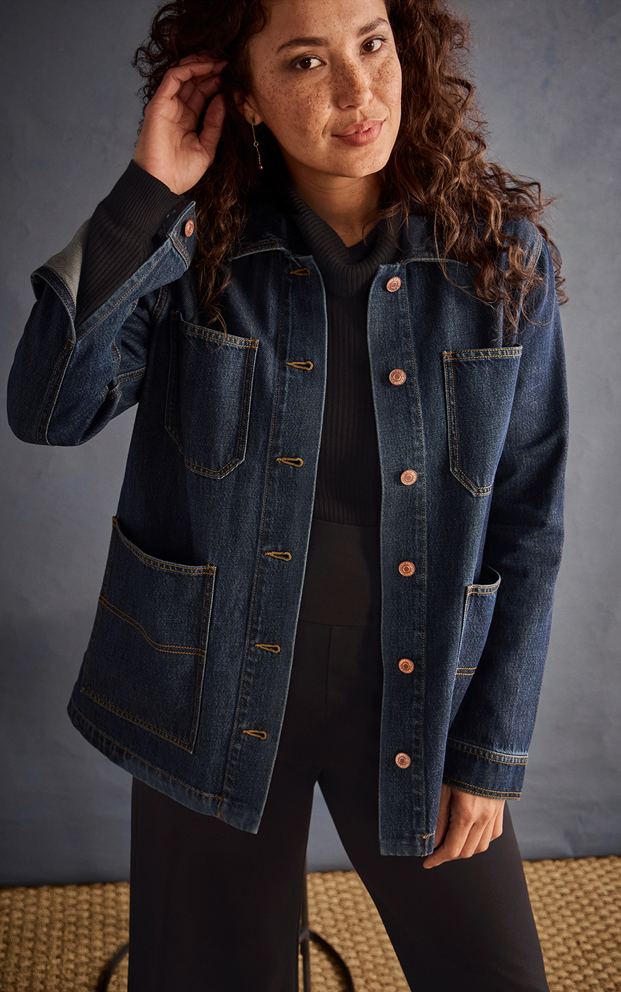 Rugged charm meets runway-ready style with our Barn Jacket. Featuring a relaxed fit, button front, and oversized patch pockets, it’s crafted from the same cotton-Tencel fabric as the beloved Beau Jean. With a classic chore coat vibe, it’ll add versatility to your wardrobe—and luckily it comes without the chores.