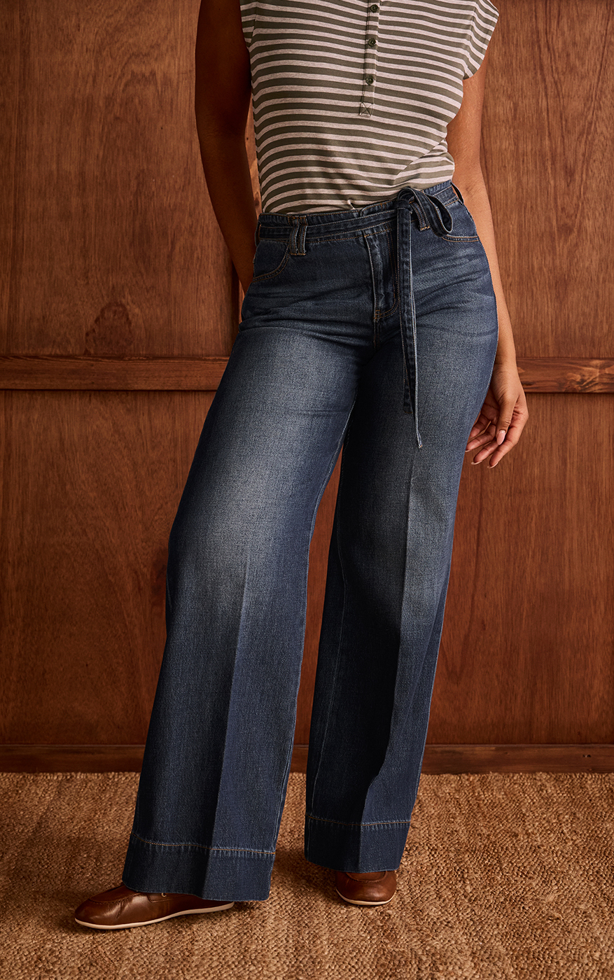 The Beau Jean is crafted from a soft cotton-Tencel blend for a high rise, easy fit, and wide leg. Two belt loop sizes keep the removable self-tie belt secure, adding a customizable touch. Wear them for brunch, weekend errands, or relaxed outings—you might have other boyfriend jeans, but none quite like these.
