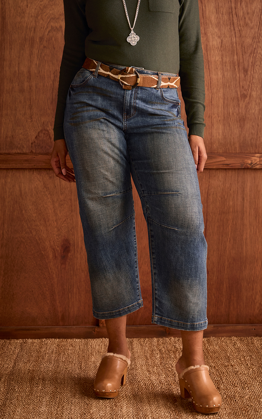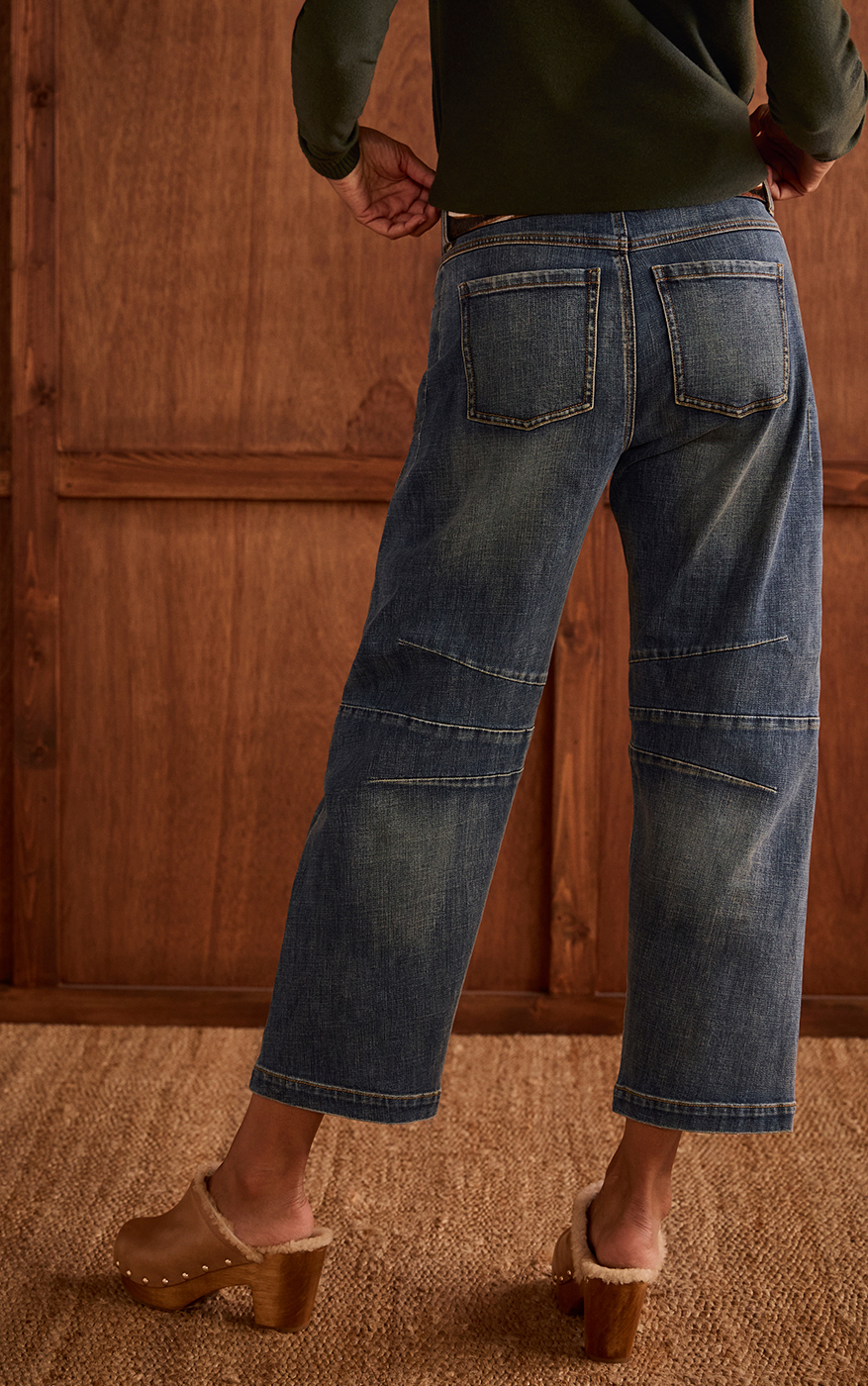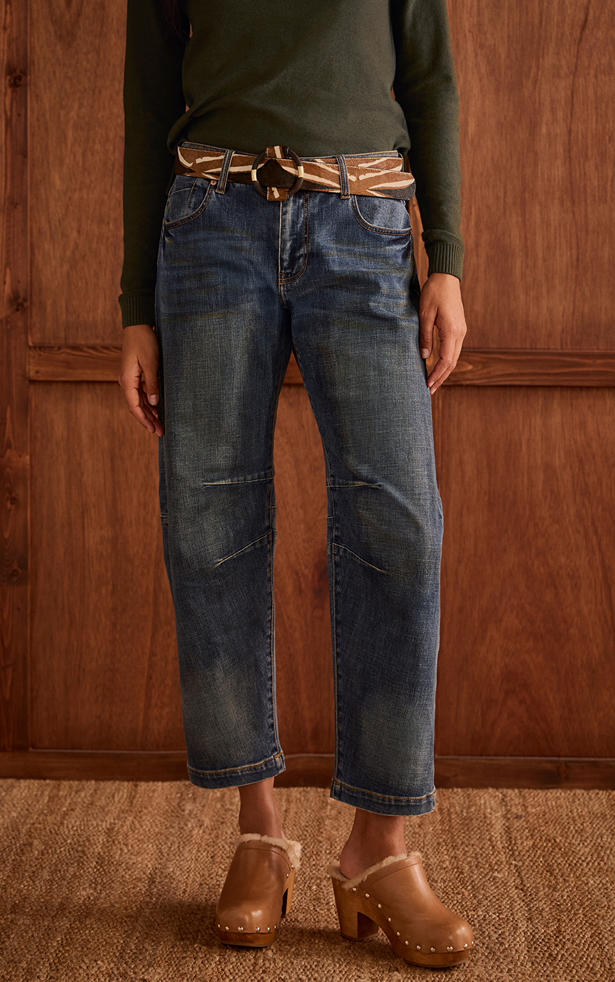 Shaped with a barrel-tapered leg and finished in an “oil-stained” wash, the Cooper Jean is a relaxed high-rise pant with a refined edge. An on-trend take on classic denim that’ll make your current wardrobe feel refreshed, its cropped fit and rugged details make it ideal for weekend getaways or casual nights out with friends.