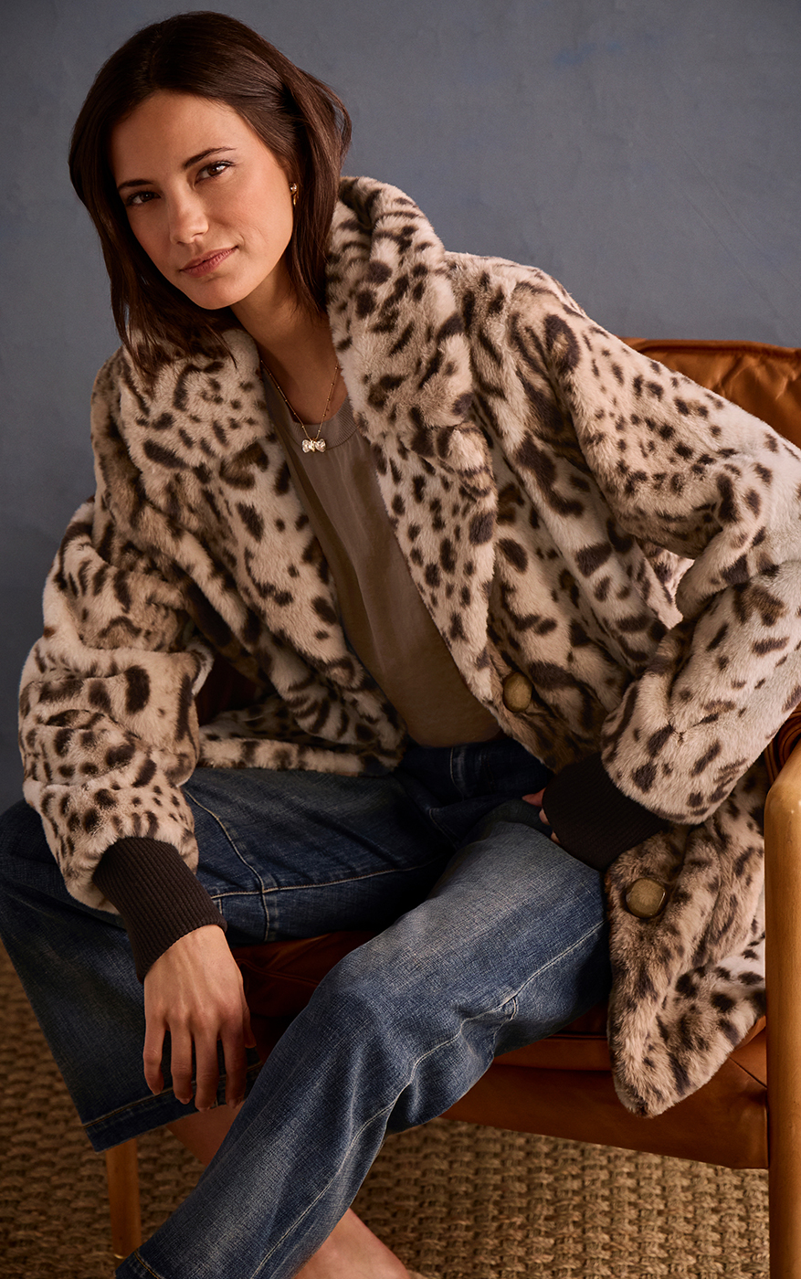 Plush, polished, and on-trend, the Leopard Coat is your cold-weather showstopper. With unbelievably soft faux fur and bold, oversized details—like its buttons, pockets, and personality—this piece ensures you'll be turning heads and spotted everywhere you go.